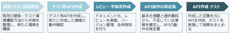 • API基本仕様書と提供資料に基づいた動作の再定義とAPIの作成およびテスト