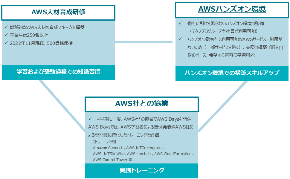 この育成スキームは、戦略的なAWS人材の育成スキームを構築しており、2022年11月現在で卒業生は250名以上、500資格を保持しています。